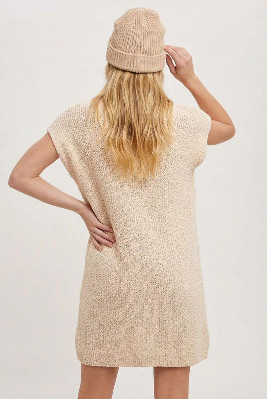 V Neck Knit Sweater Dress with Pockets Casual Cozy