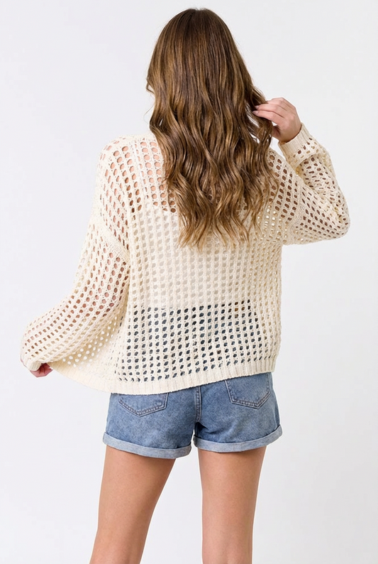Lightweight Crochet Open Knit Cardigan Boho Layering
