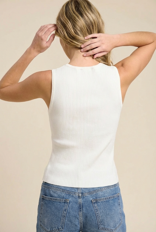 Bow Front Ribbed Knit Sleeveless Tank Top Coquette