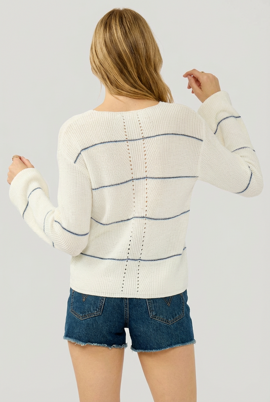 Lightweight Stripe V Neck Knit Sweater Casual Top