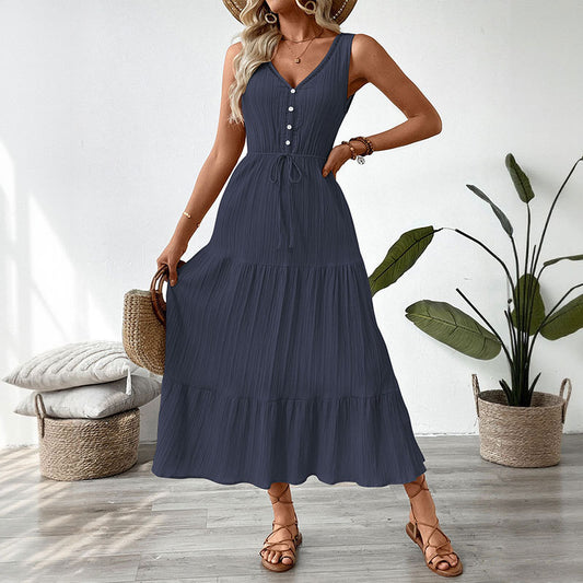 Light Blue Sleeveless V Neck Maxi Dress Vacation