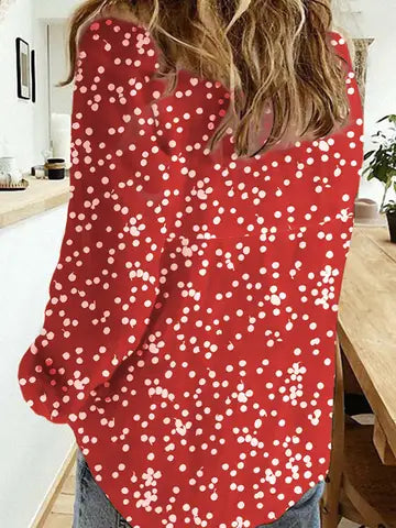 Women’s V-Neck Polka Dot Blouse Long Sleeve Casual Top