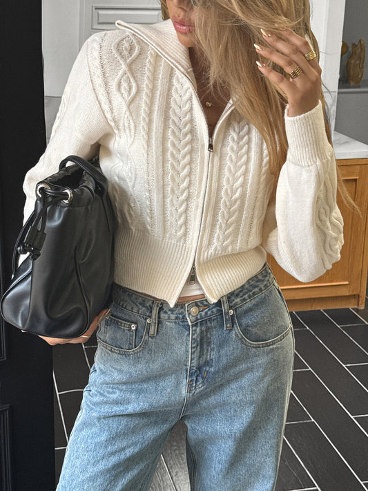 Women’s Y2K Zip Up Knit Sweater Jacket Long Sleeve Top