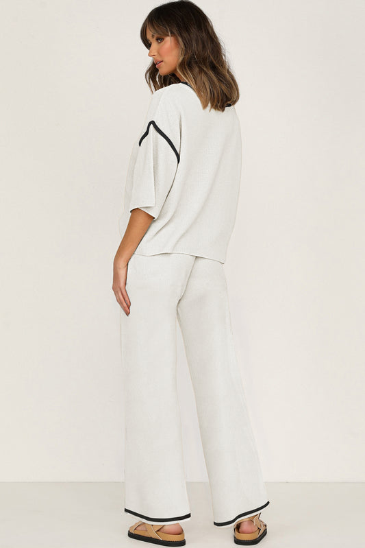 Women’s Knit Lounge Set Contrast Trim Top and Pants