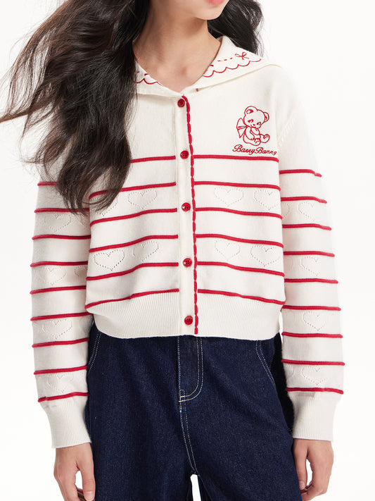 Adorable Heart Pattern Teddy Bear Button-Up Cardigan for Girls