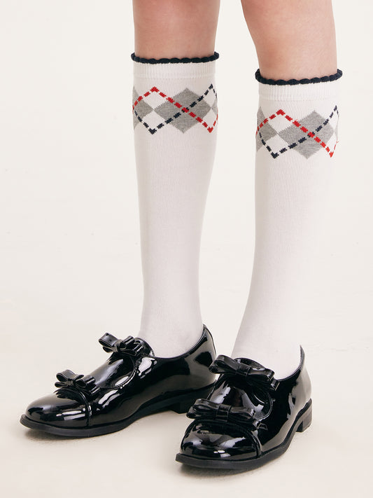 Girls Argyle Cotton Crew Socks Mid-Calf School Style
