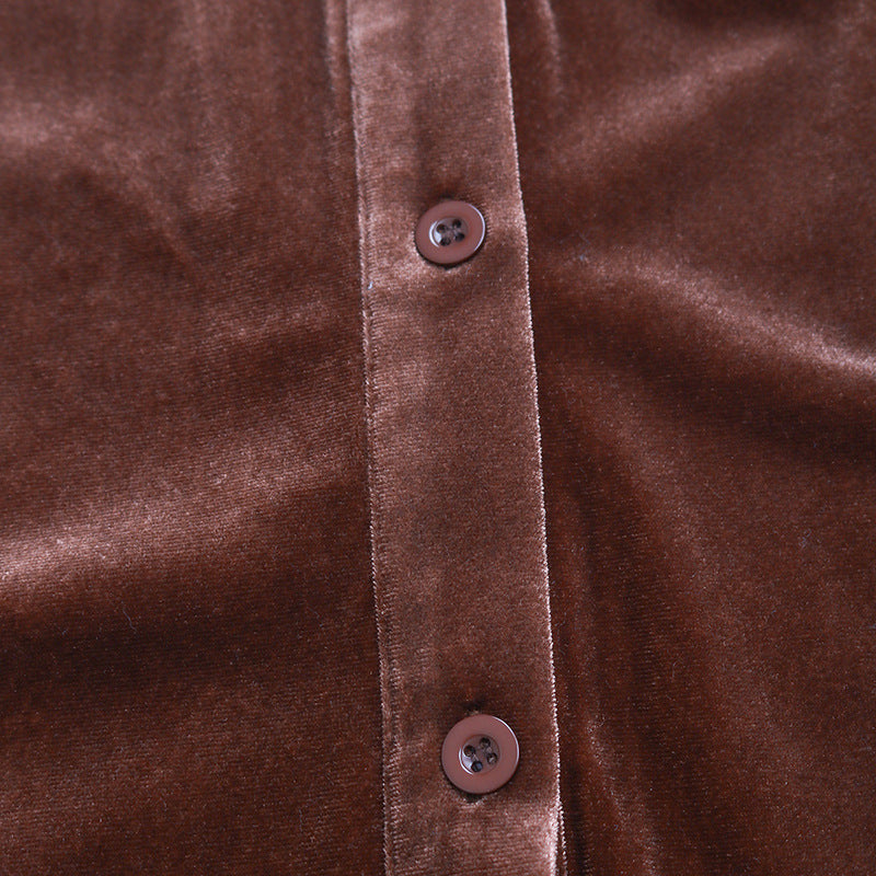 Solid Velvet Button-Up Lantern Sleeve Collared Blouse