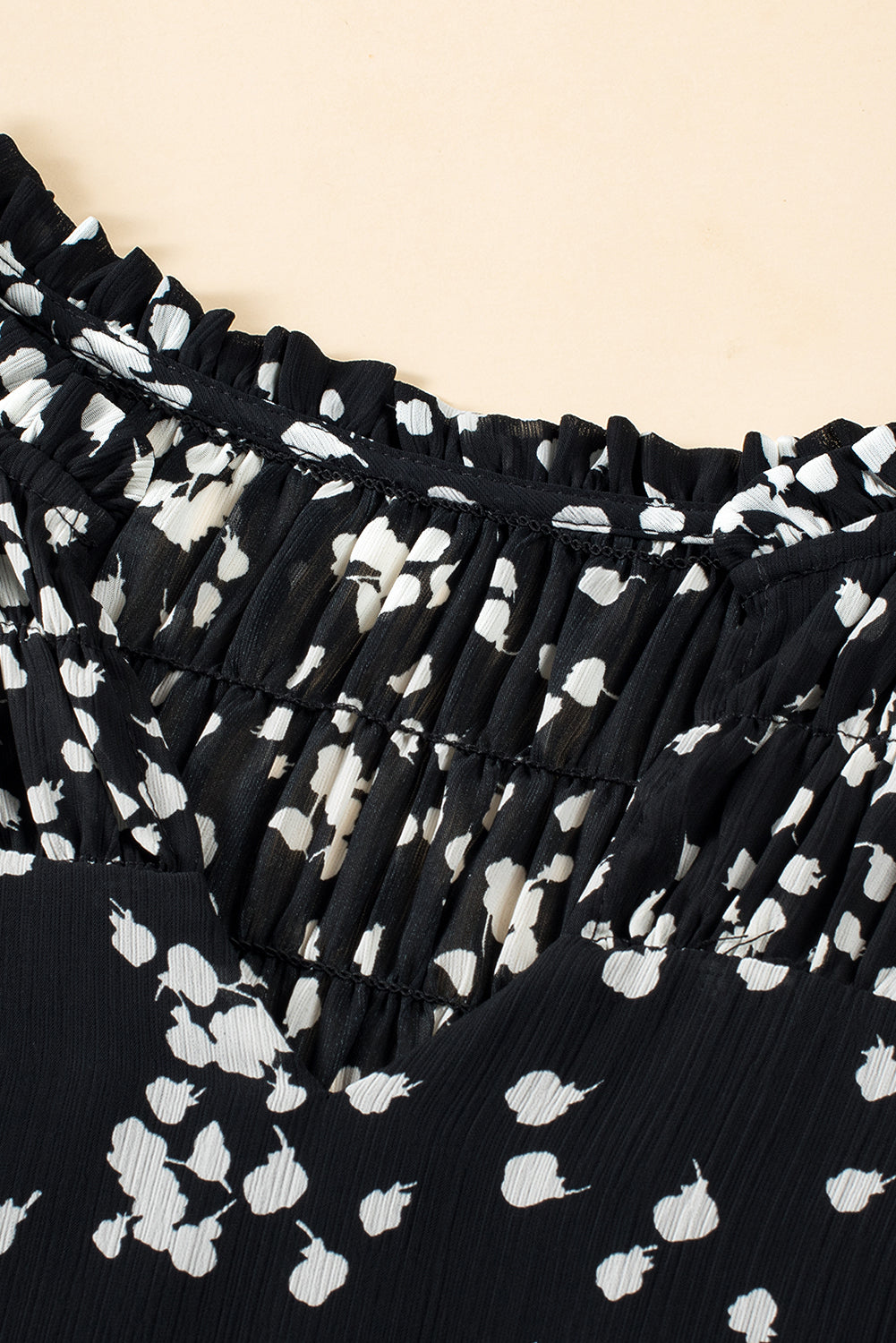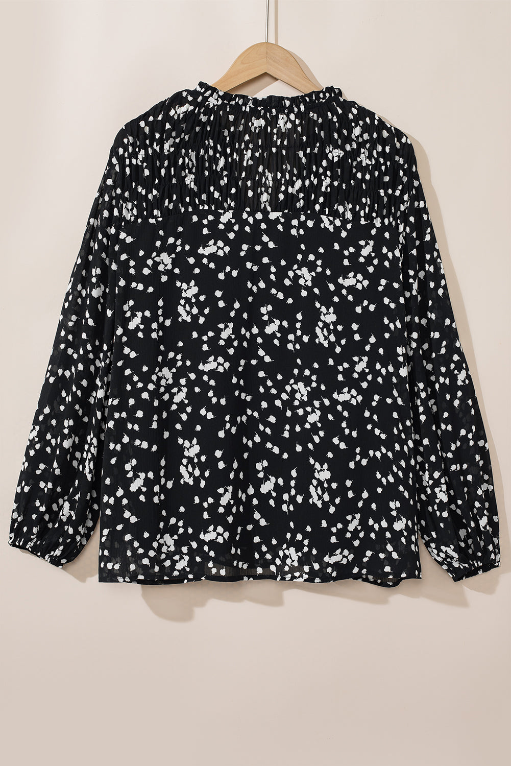 Bright Pink Plus Size Floral Print Ruched Split Neck Blouse
