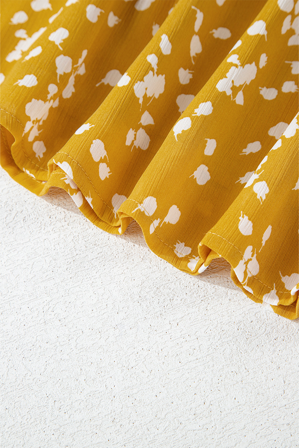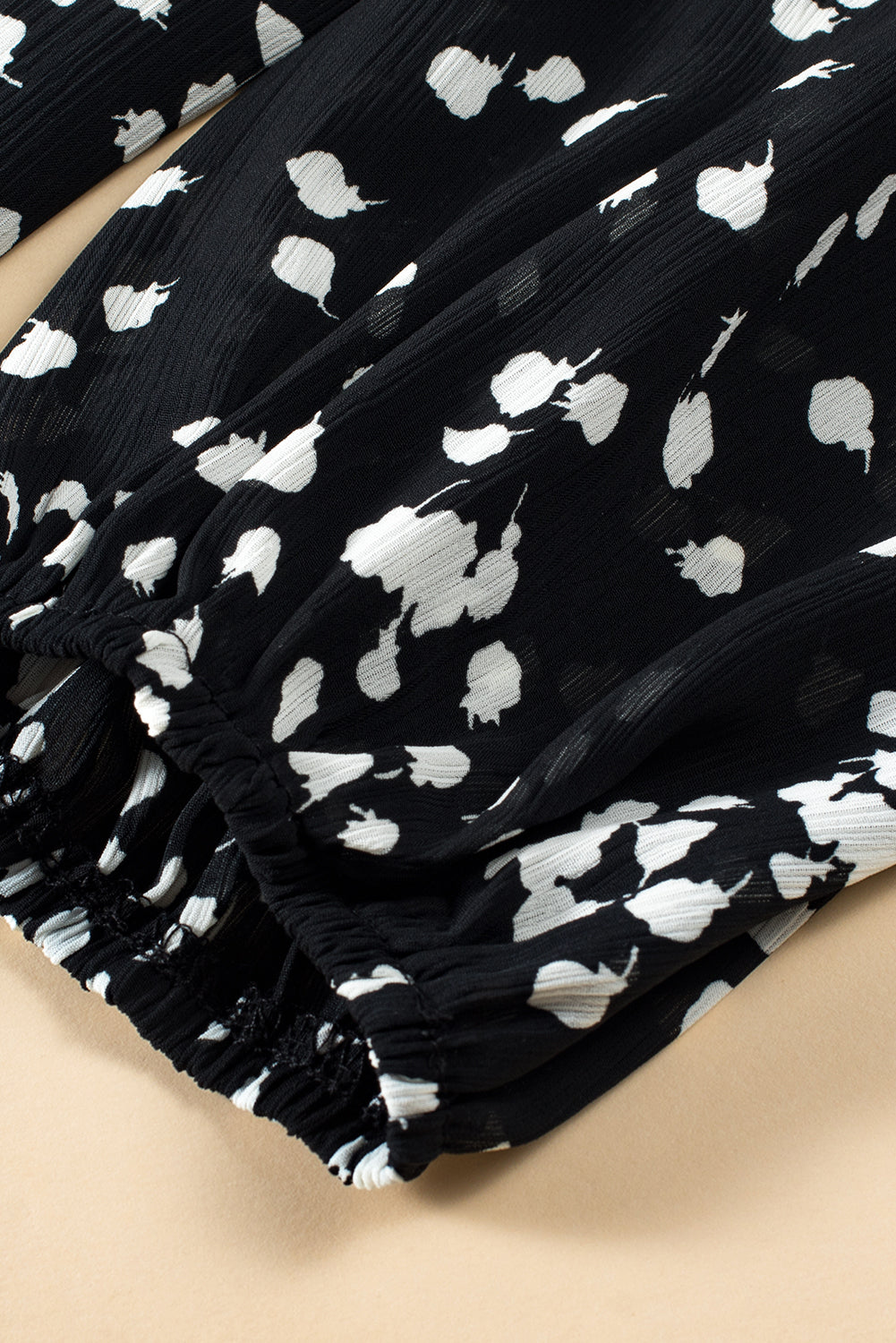 Bright Pink Plus Size Floral Print Ruched Split Neck Blouse