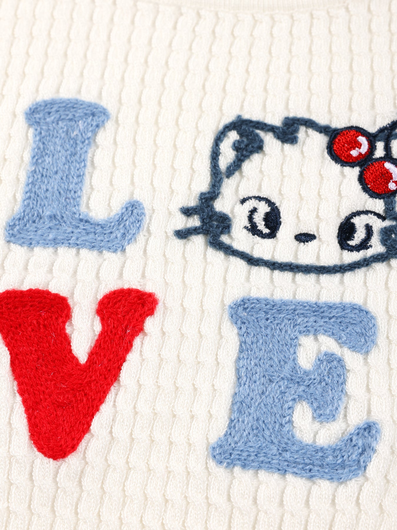 • Cute Embroidered Detail – Features playful “LOVE” lettering with a cartoon cat design, adding a fun and youthful touch to the simple silhouette.