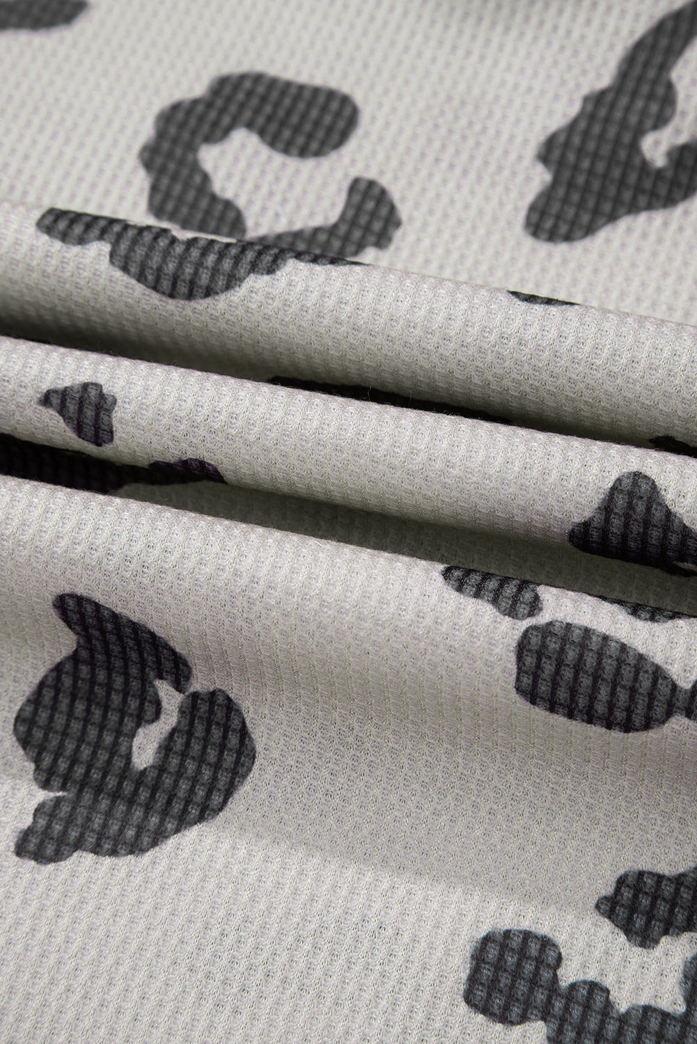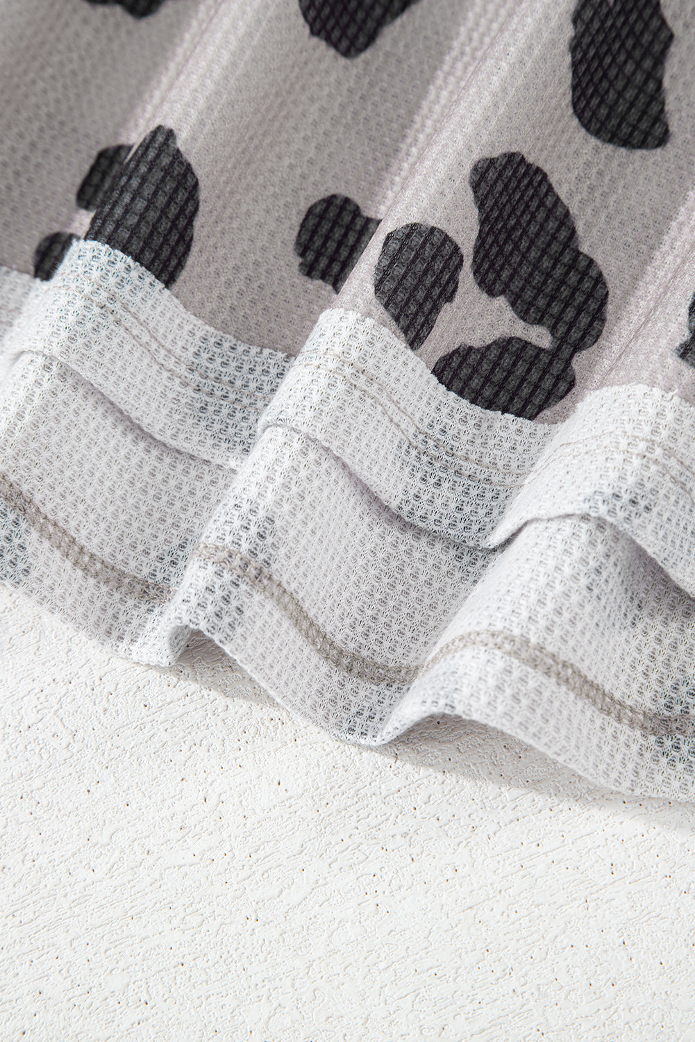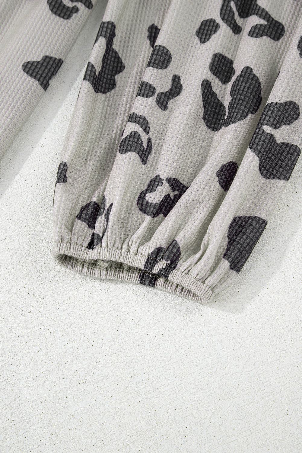 Gray Printed Leopard Balloon Sleeve Thermal Knit Plus Size Top