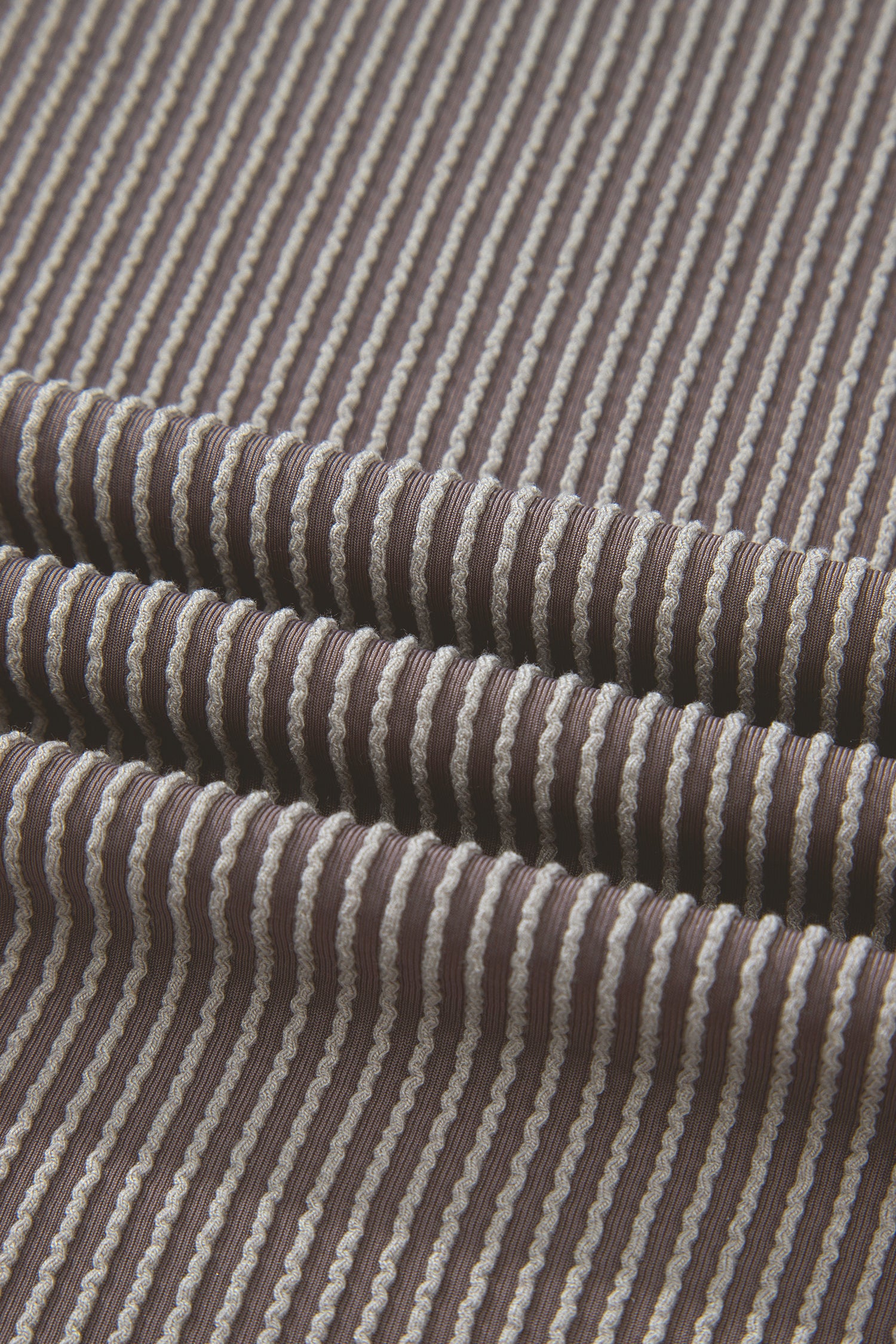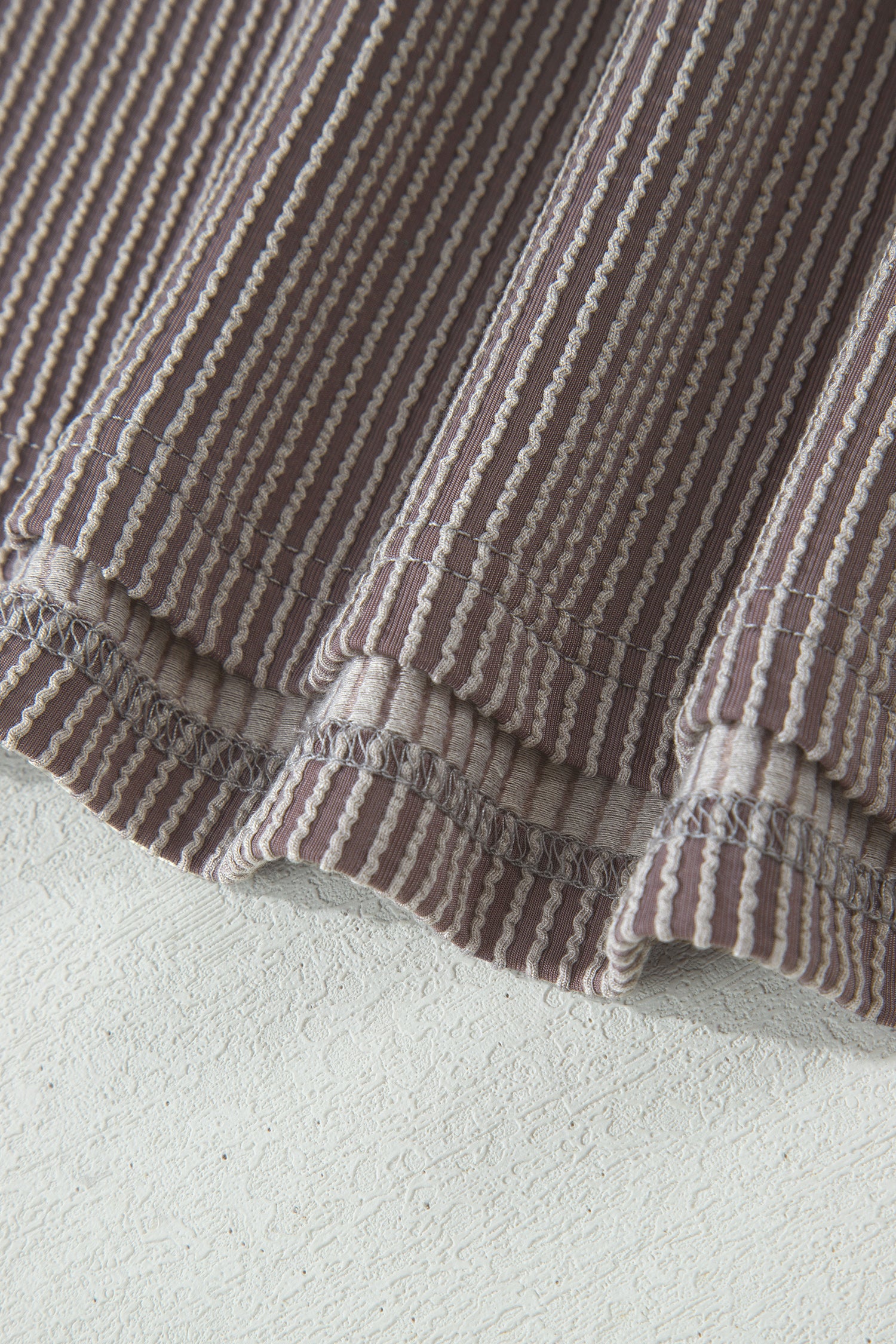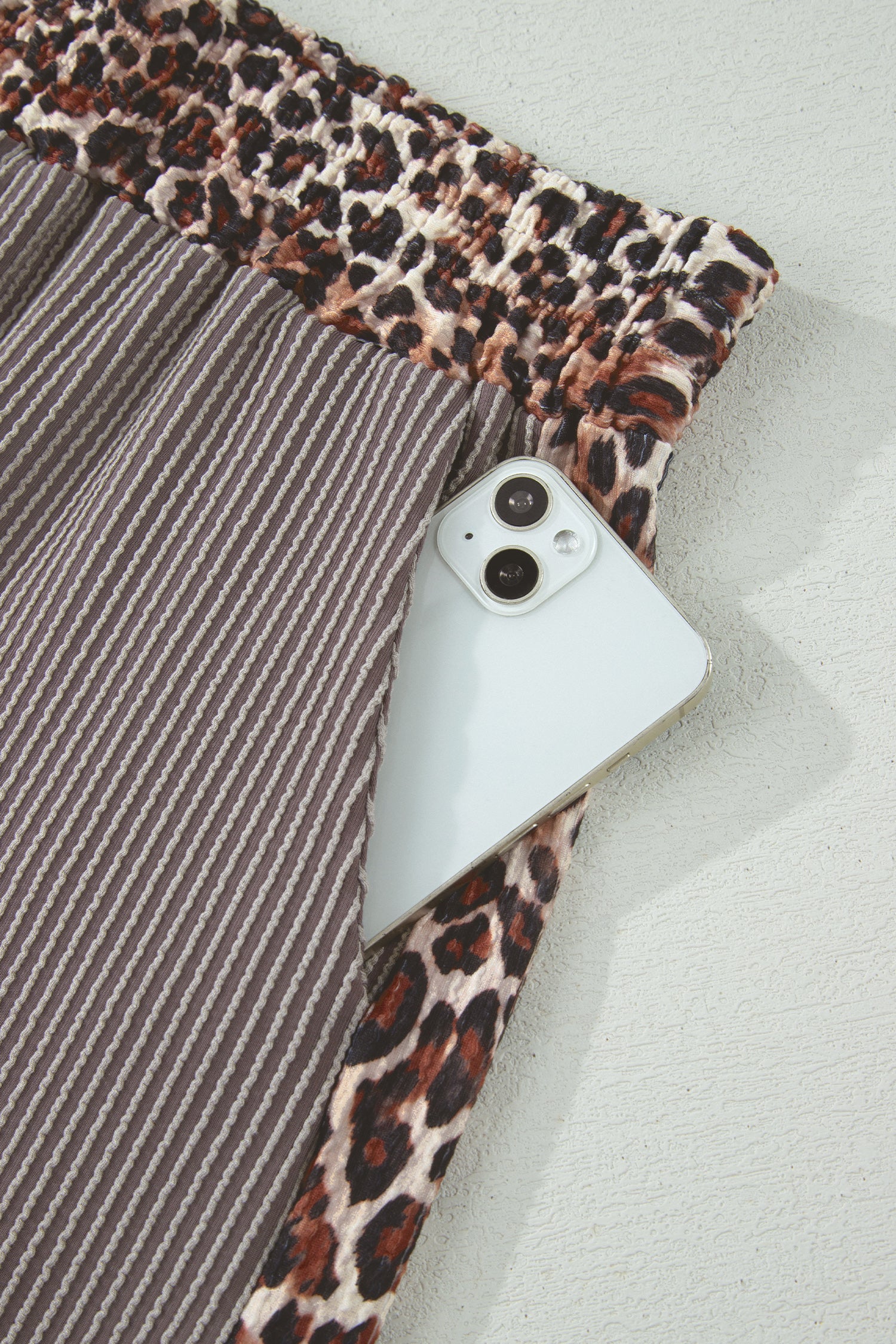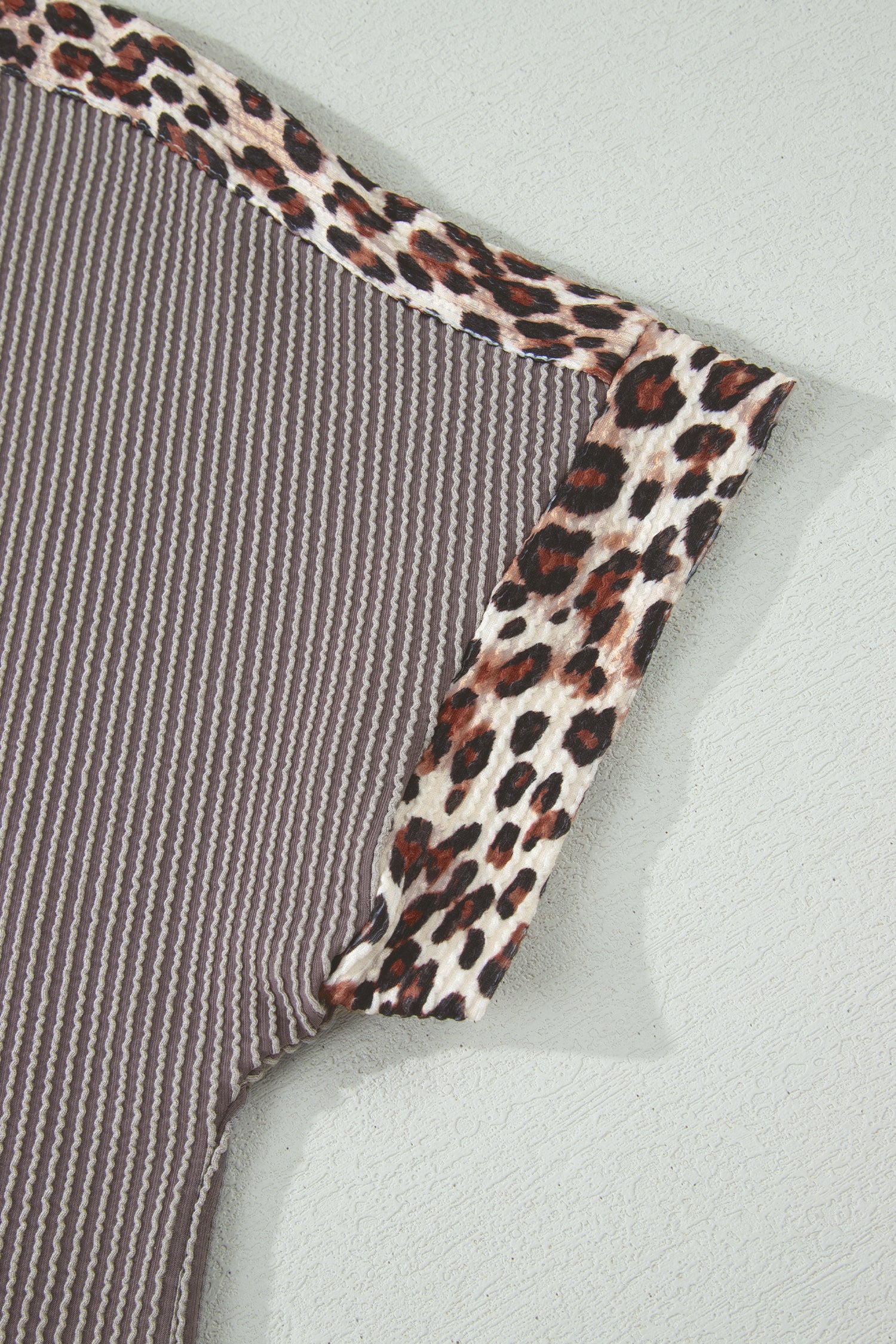 Leopard Trim Ribbed Short Sleeve Top and Shorts Set