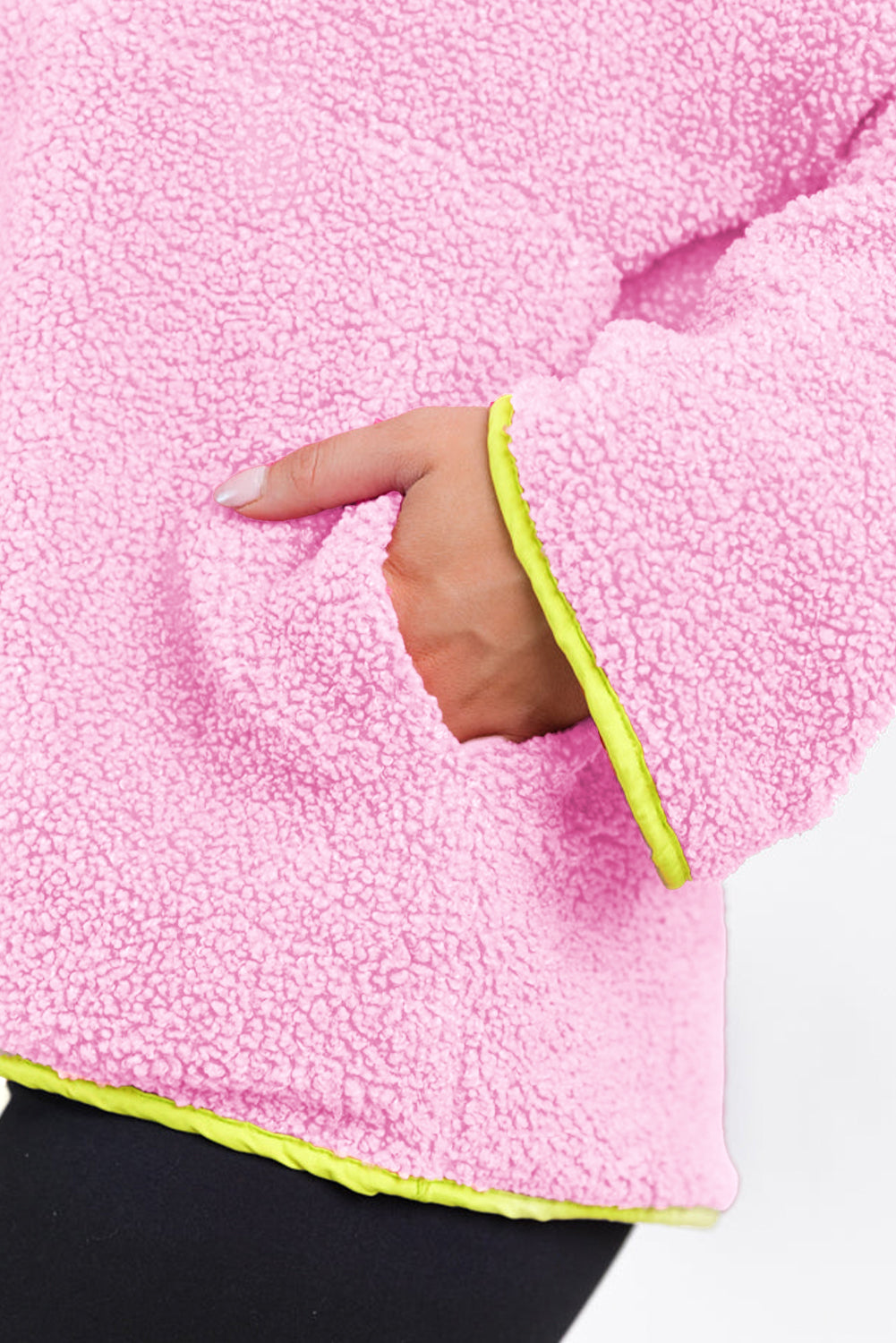 Cozy Sherpa Half Zip Pullover Hoodie with Contrast Trim